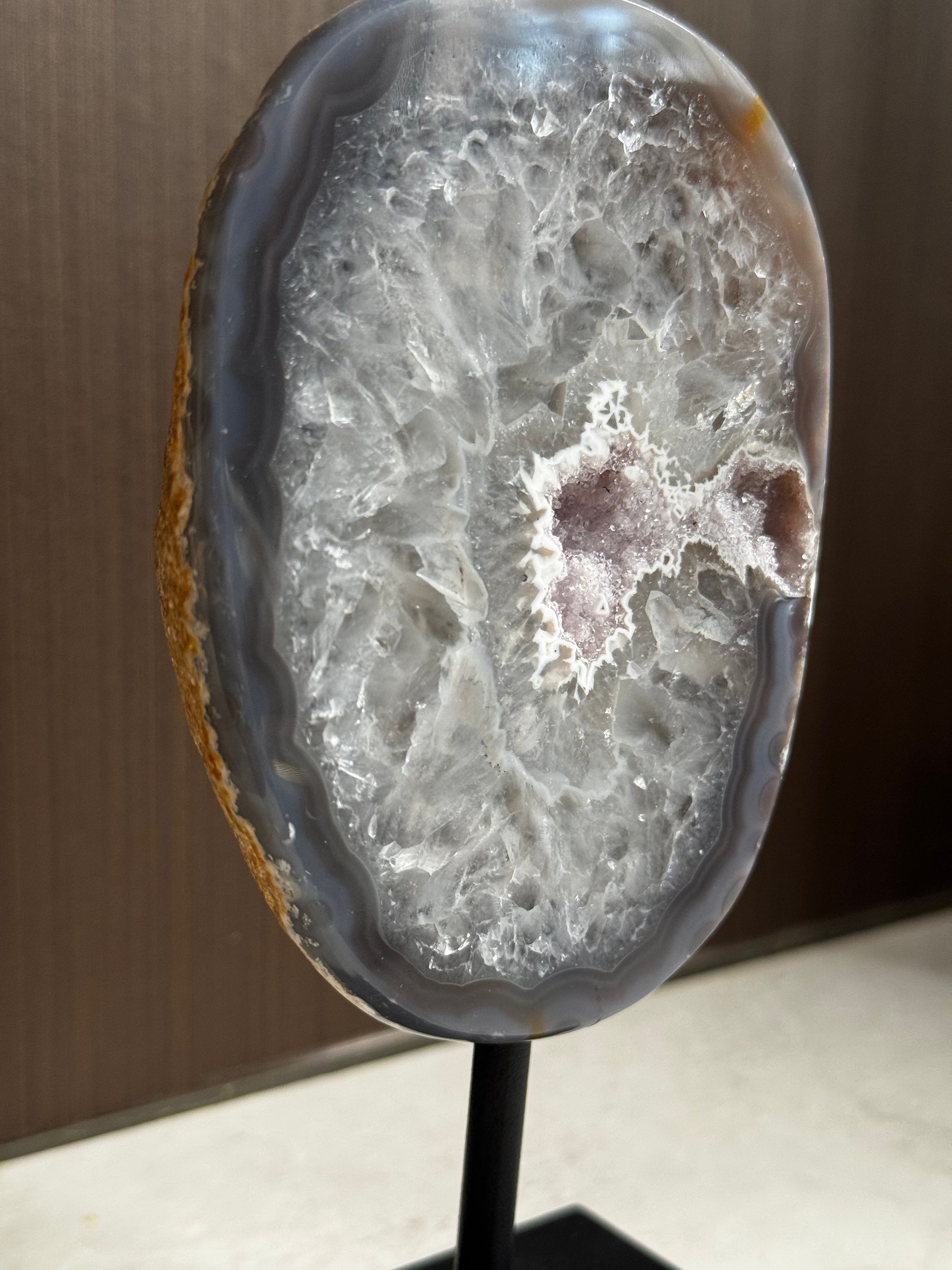 Prachtige ijs grijze agaat met lila/paars hart