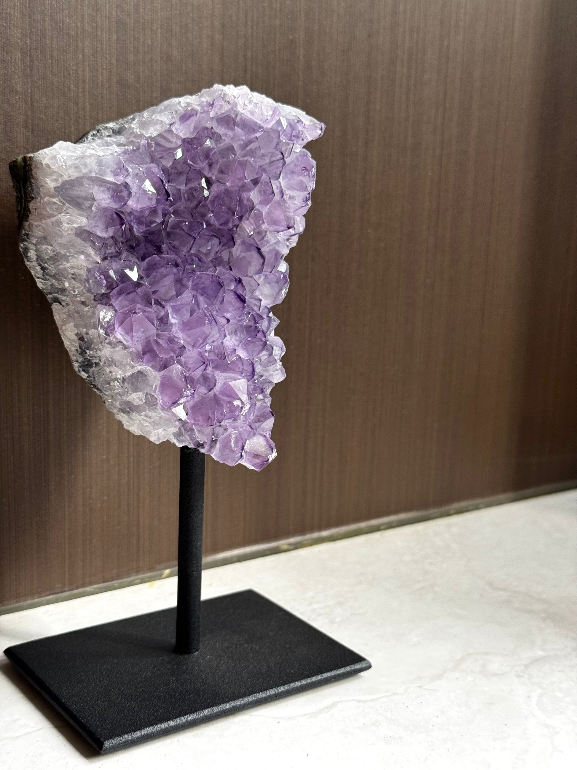 Mooi royaal stuk Amethist op standaard. Met een diepe paars tint.