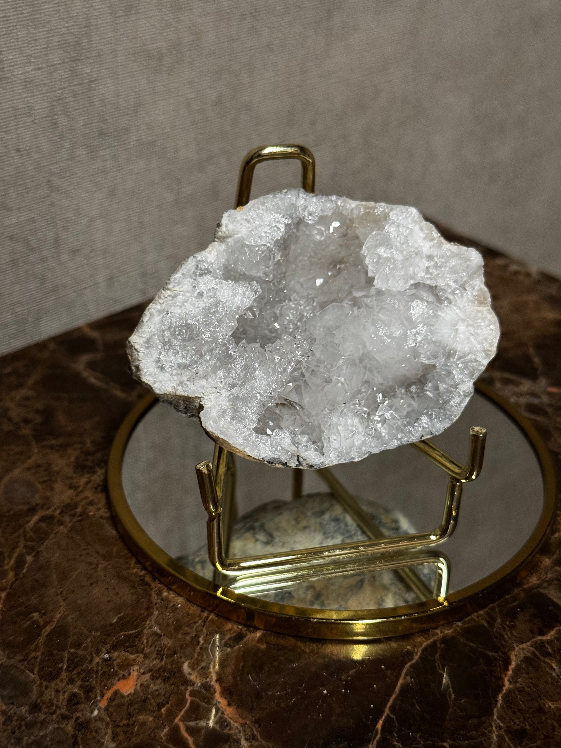 Bergkristal helft mooie combinatie van matte kristallen en fijne suiker kristallen en grijze gloed.