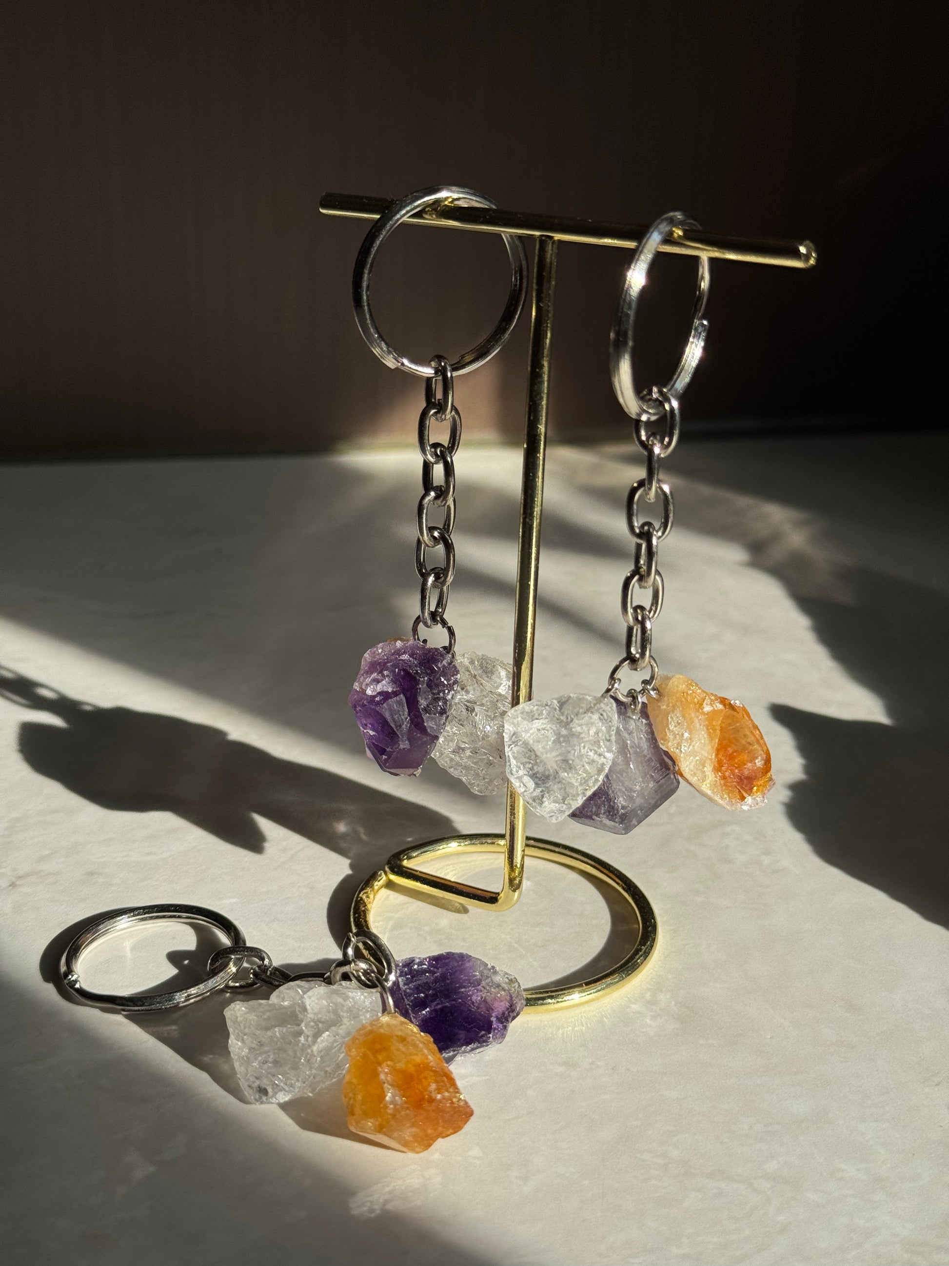 Ruwe brokjes van; Amethist, citrien (gebrande amethist) en bergkristal.